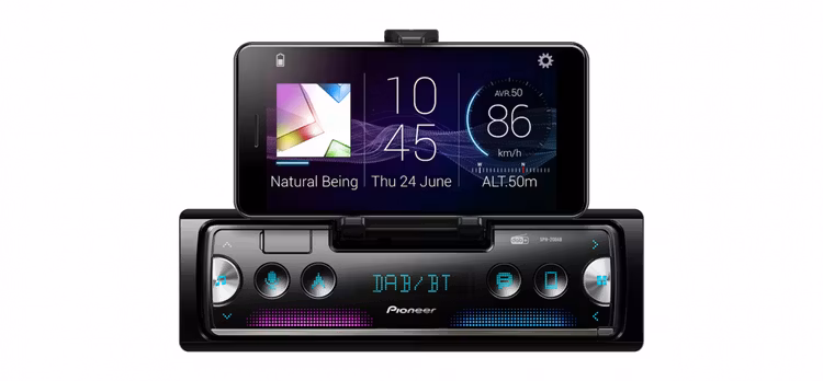 Enkelt chassi med fäste för att använda smartphone som stereons skärm