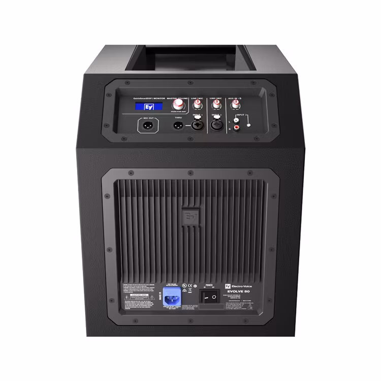 The EVOLVE 50 Portable Column System is a three-component loudspeaker system powered by a 1000 W Class-D amplifier and driven by Electro-Voice's QuickSmartDSP.